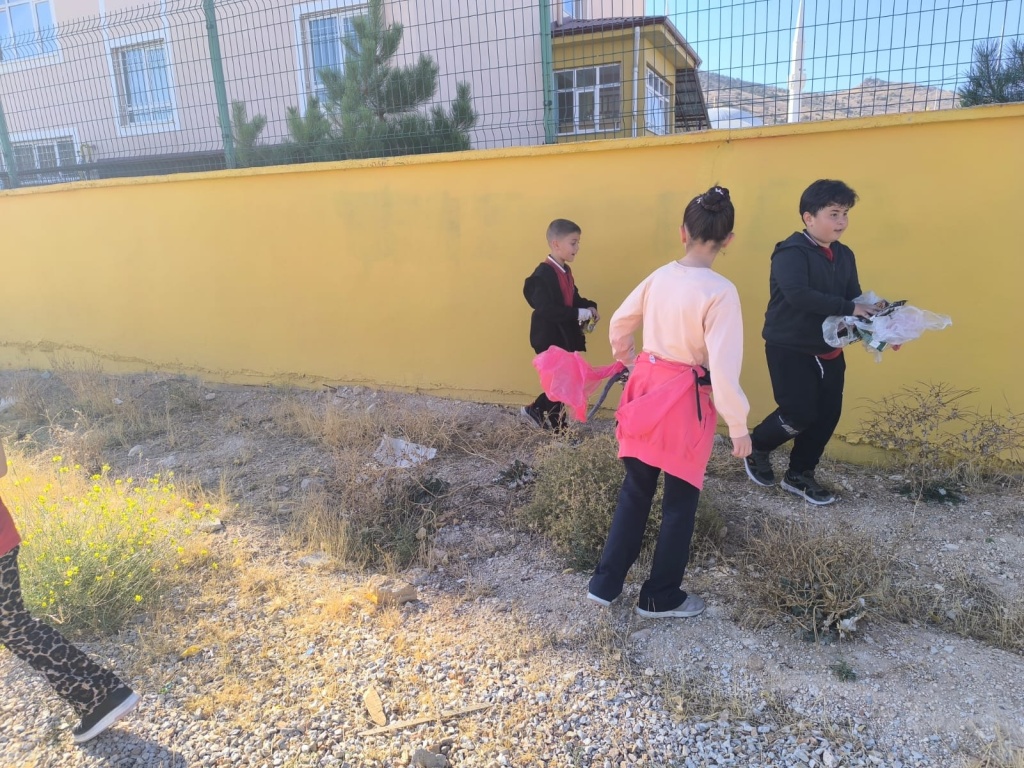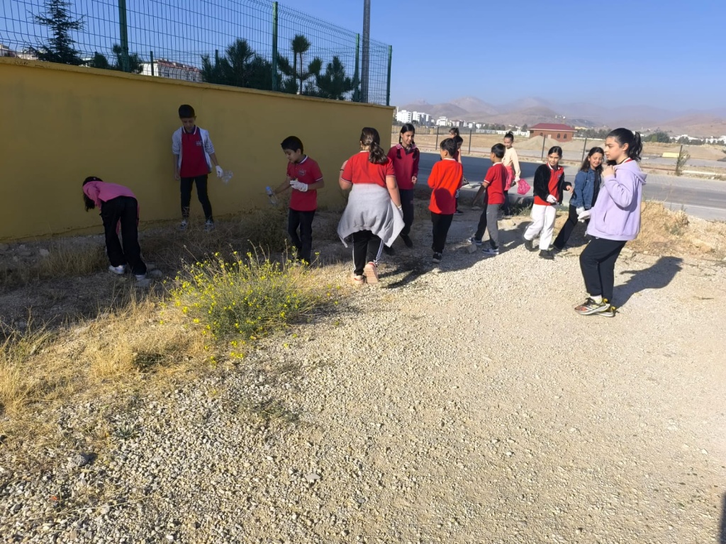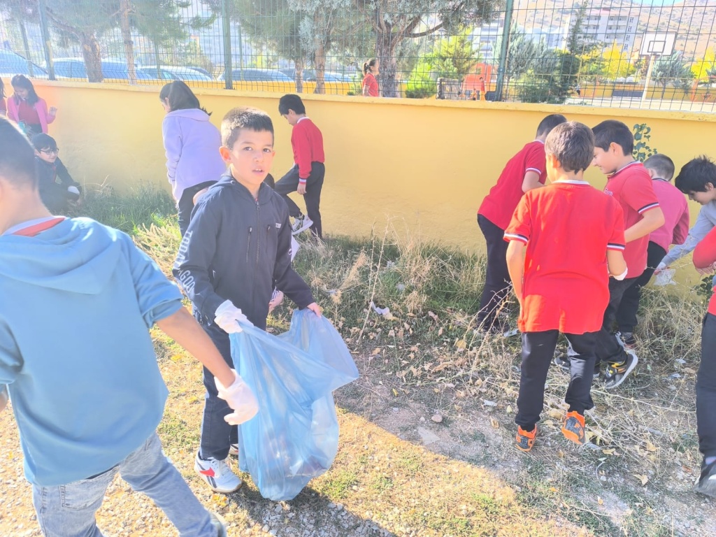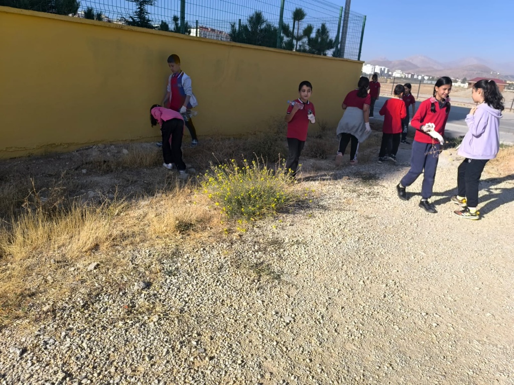 Afşin Ertuğrul Gazi İlkokulunda öğrenim gören öğrenciler, öğretmenlerinin rehberliğinde çöp poşetlerini alarak mahalle ve caddelerde temizlik yaptı. Yerlere atılan çöpleri toplayan öğrenciler, atıkları çöp konteynerlerine bırakarak çevreye duyarlılık örneği sergiledi.