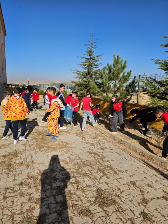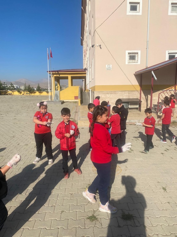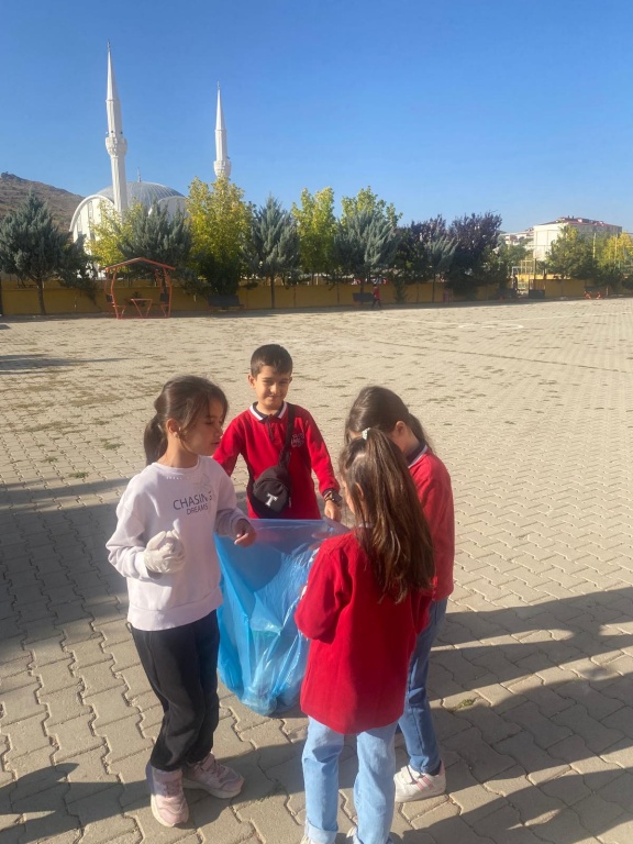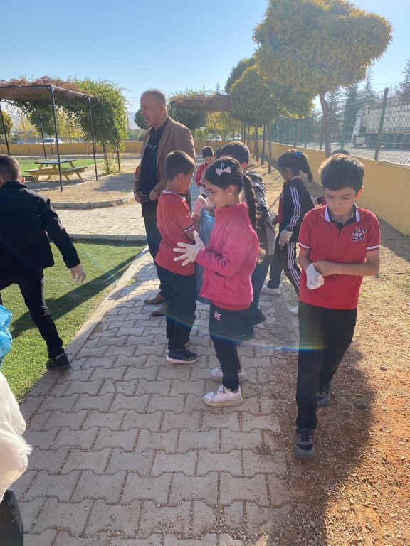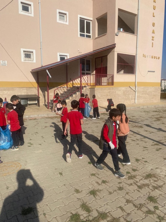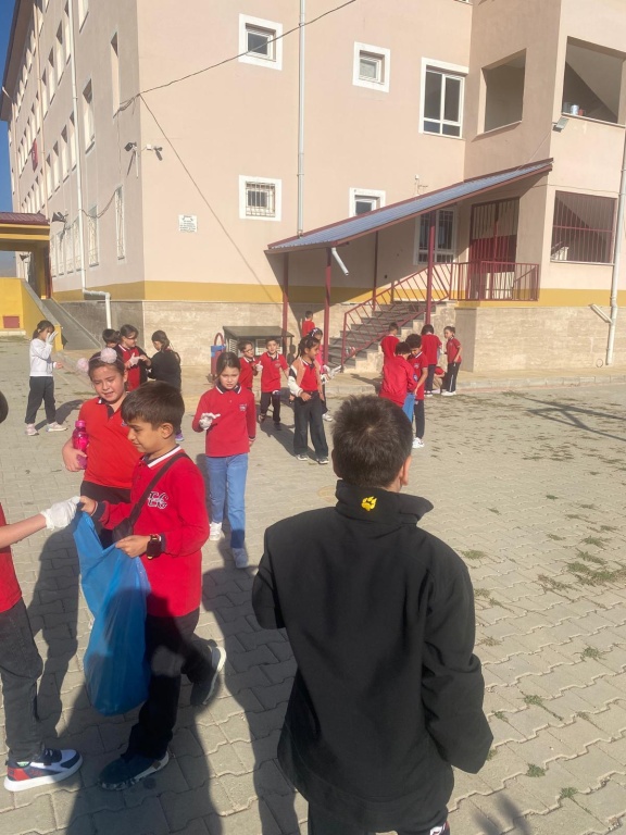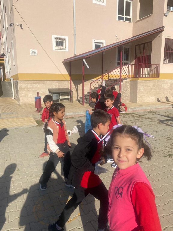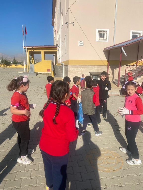 Afşin Ertuğrul Gazi İlkokulunda öğrenim gören öğrenciler, öğretmenlerinin rehberliğinde çöp poşetlerini alarak mahalle ve caddelerde temizlik yaptı. Yerlere atılan çöpleri toplayan öğrenciler, atıkları çöp konteynerlerine bırakarak çevreye duyarlılık örneği sergiledi.