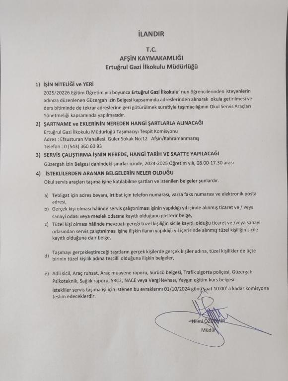 Okulumuz Öğrevcilerini Taşıma hizmeti verecek olan servis araçlarında aranan şartlar